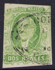 Scott #3d Dos Reales sin sobreimpresión, envío directo al Distrito de Colima.