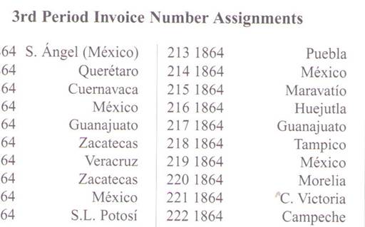 La mejor información siempre tiene las respuestas más claras. En este caso, tenía el catálogo de Dave para parte de la respuesta, pero mi primera búsqueda comenzó con el catálogo de Nick Follansbee para obtener otra idea del valor del sello y la oficina del distrito. Usar la lista en NF para el envío del distrito me dio la respuesta al distrito 221.1864. Sin embargo, ahora sabía que el distrito era Victoria porque, en 1864, las autoridades postales enviaron el envío número 221.1864 a ese distrito. Entonces recurrí al catálogo de Dave, buscando en Victoria. Dave escribió una buena reseña sobre estos sellos, que se usaron en Victoria en 1864 y algunos de ellos se enviaron a San Luis Potosí en 1866. Debido al cambio de gobierno en Victoria, solo alrededor del 25 % de estos sellos se usaron en 1864 en ese distrito. Casi dos años después, los sellos se enviaron a Tula de Tamaulipas (200 ejemplares) y el resto a San Luis Potosí. Todas estas emisiones restantes se facturaron al distrito de San Luis Potosí. El libro de Dave muestra que la transferencia de los Un Reales fue de 889 ejemplares, y que su valor para mi sello usado en el distrito era "E" por $40-60. El uso original de este envío en el distrito fue muy escaso; sin embargo, cuando estos Un Reales se enviaron a San Luis Potosí y se usaron con bastante frecuencia, el valor de los ejemplares usados disminuyó. Conservaron parte del valor de su color original, además del menor total usado, mejorado, en comparación con otras emisiones Ultra-color del tercer período.