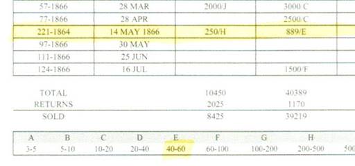El cuadro detallado arriba es del Catálogo de los Eagles de David Pietsch de 1864 a 1866.