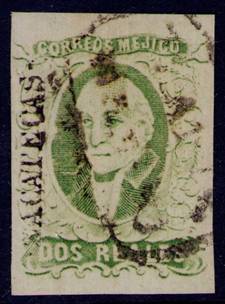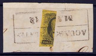 #9a Quatro Bisect Aguascalientes sin sobremarca, emisión de 1861 en pieza