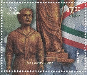 El 24 de octubre de 2023 Correos de México le rinde homenaje a Elvia Carrillo Puerto al aparecer su rostro en la estampilla conmemorativa de los 70 años del voto femenino (SC#3319) (g).