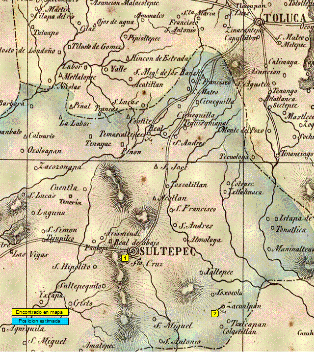 Distancia ( leguas según “Itinerarios y Derroteros de 1856” )( números entre paréntesis son estimaciones): De Sultepec a: Zacualpan (9).